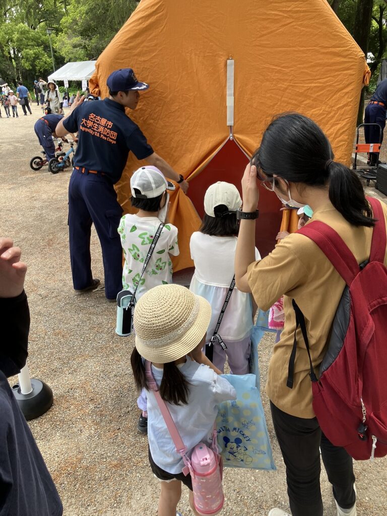 / 最終更新日 : 児童養護施設ブログ たのしくマナ防災 今日はイベントにご招待をいただき園から30分ほど歩いて鶴舞公園に行きました5月といえども気温は高く長い道のりだったので途中で水分補給の休憩をはさみながら頑張って歩きました幼児2人は小学生の速度に合わせて歩き特に頑張りました 最初に公会堂で防災の映像を見て学びました東日本大震災の地震や押し寄せてくる津波の映像だったので子どもたちは神妙な面持ちで見ていました視聴後はシェイクアウトの訓練「まず低く、頭を守り、動かない」子ども達はすぐに机の下に身をかがめて頭を守るという習慣が身についており安心しました 😮💨 映像の後は防災関係の展示を見学地震が発生する仕組みから実際に被災した際の生活まで様々な展示物がありましたが小学生には難しかったようです唯一段ボールハウスには興味を引かれ窓から顔を出して職員にピース ✌️楽しそうでした 外会場では火災体験消防団の方から煙が充満する火災現場からどのように避難するかの説明を受けました説明を受けた後は実際に💨煙が立ち込める💨テント内に入り火災現場の視界の悪さを体感口にハンカチを当てて身をかがめながら出口まで向かうのです子ども達は恐る恐る中に入っていき出口を見つけて明るい外に出るとあ〜ドキドキしたー!と顔を見合わせていました地震の揺れを体験できるコーナーもあり激しく揺れる地震体験車を見てあれやりたい! 🤩子ども達はアトラクション気分で目を輝かせていましたが時間が合わず 体験できませんでした(´・ω・)ショボーン 昼食は公園内に立ち並ぶ屋台なにが食べたい?子ども達から希望がでたのは想像通りの焼きそば・からあげ・たこ焼きみんなでシェアして食べましたフライドポテト🍟だけは子ども達の強い要望で1人1袋やった〜こんなにたくさん入ってる!満足そうでした食事のあとはかき氷 🍧何とシロップかけ放題!カラフルできれいな仕上がりの子もいれば欲張りすぎておどろおどろしい色の子も… 😆味はよく似たものなので好きなシロップがたっぷりかけられてみんな大満足でした ご招待くださいました一般社団法人DRCT災害復興協力チーム代表の堀様子ども達に楽しく防災を学ばせることができましたありがとうございました。一般社団法人DRCT http://www.drct.jp/Written by M.S