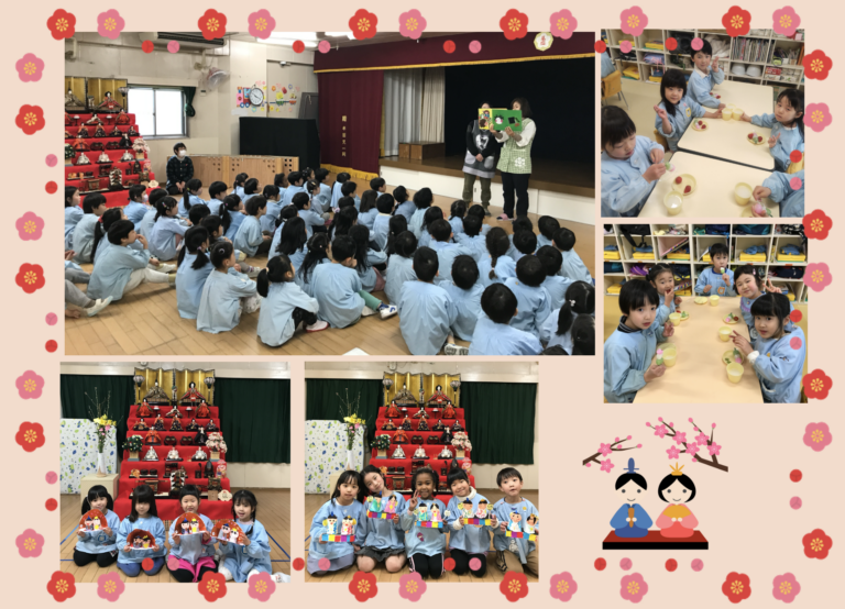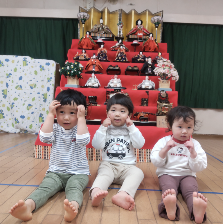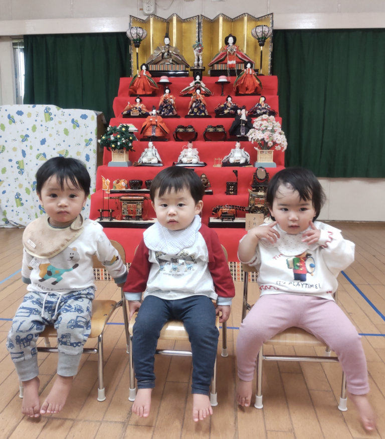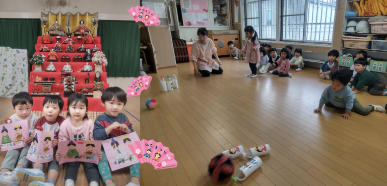 / 最終更新日 : 保育園ブログ 楽しいひなまつり 初めてのひなまつり🎎⭐最近は手先が器用になってきて、ひなまつり製作にも挑戦!!ペタッ!と上手にシール貼りもできました👏以前手にくっついて苦戦していたシールも今では狙ったところにバッチリ貼ることができている😊最後に立派な雛人形の前で記念写真📷泣いちゃうかな?と思いきや、、、目の前のキラキラしたお人形に圧倒されたのか?逆に固まって無表情 ((笑)0歳児らしくてとっても面白いショットになりました😊 今日は何の日~? と問いかけるとほとんどの子は頭に???がいっぱい((笑))♫うれしいなひなまつり♫をみんなで歌いましたちらし寿司のイラストを見せてワクワク感をふくらませ〜興味を集中させたところで〜じゃじゃ〜んちらし寿司の登場!皆んな目を輝かせて食べてました𐃆 ˒˒( ◍′༥‵*◍)ŧ‹”ŧ‹” ひなまつりの歌を歌ってルンルン♪その後はおだいり様とおひな様のボーリング大会🎳おもいっきり投げて倒れるとルンルン♪次はおだいり様とおひな様チームに分かれて玉入れ〜( ・0・)ノ° ゜.Y。°。ヽヽ(・・ ) ボールを入れるのに必死💦たくさん入ると…やったー!でルンルン♪おひな様作りでは自分のだいすき❤をいっぱい詰め込んで一所懸命作りました。子どもの発想はとても豊か⭐️⭐️キラキラお部屋が華やかに飾れました 💖ひなまつり会では歌を歌った後にひなまつりの紙芝居今日のおやつは三色だんごとカルピス!と紙芝居よりも特別メニューが嬉しかったようです😄皆んなでカルピス片手にかんぱ〜い三色だんごに大喜び😆まさに花より団子でした 🌸<🍡Written by S.Y & S.Y