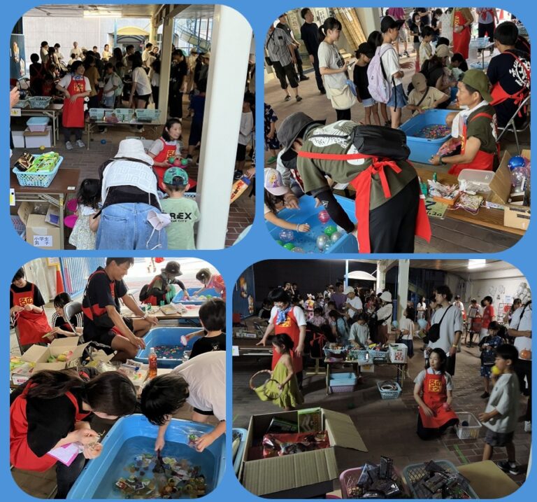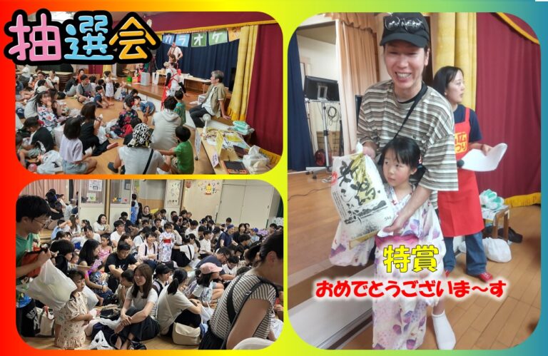 / 最終更新日 : 保育園ブログ 第44回 名広まつり 8月23日開催で準備を進めていたのですが7月の参院選の影響で地域のお祭りが8月に集中してしまい名広まつり行きたいのに日にちがかぶってるじゃん…変えてとの声が地域から数多く届きどんだけ祭りが好きやねん…と心の中で呟きながら30日に急遽変更 3時半の開場を待つお客様もチラホラで例年の半分以下始業式直前は私も必死に宿題やっとからな〜今回は静かな祭りになりそうだな〜と心の中で呟きながら…よ〜呟く人やなのんびり構えていましたら5時頃から来場者が増え始め屋外飲食ブースはほぼ満席状態 恒例のバザー会場以外に「少林寺拳法の教え」や「遊んで学ぼう!」「アマチュア無線とモールス信号」等の各イベント会場も想像以上の賑わいでした 講堂では「みんなでカラオケ」初めてのイベントでしたがわたしの歌まだ入ってないんですが…ぼくのは何番目になりますか?子ども達のリクエストが さばききれない状態多くの老若男女に歌って欲しかったのですがなんせ子どもの人口密度が超高く大人の入る余地なしそれでも皆さん楽しんでくださりとっても盛り上がりました10数名がゾロ目賞(77点や88点)やピッタシ賞(80点90点)を出してイオンギフト券をGET!2枚獲得した子もいたとか… 日が暮れると更に入場者が増えてチケット売り場は人の列 👥👥👥手が空いた人は他のブースを協力!という話でしたが 全ての模擬店が右往左往の大忙し🍺アルコールが売り切れて職員がダッシュ💨で買い出しあげくは多めに用意していた🎫チケットまで底を尽きてしまい超速で作成80名のスタッフ+子ども応援隊は自ら購入したチケットを使うどころか休憩も取ることが出来ない程の賑わいでした 6時半を過ぎても人の波が途絶えず7時から予定していた新イベント「お楽しみ抽選会」を7時半に変更会場の講堂には来場者が続々と詰めかけ想像を遥かに超える人の数で廊下まで人が溢れていましたこれ程の人が入る設計になっていない講堂はエアコンと扇風機フル起動でも追い付かずもうサウナ状態皆さんとっても暑かったと思います7時前から待ってくださっていた方々は1時間以上この状態でキツかったと思います本当に申し訳ありませんでした🙇♀️🙇🙇♂️来年は必ず改善しますそれでも笑顔で盛り上げてくださった地域の皆さんには感謝しかありません抽選券は600枚程度を想定していたのですが1000枚を超えたため当選確率が落ちてしまい暑かっただけの方も多くいらっしゃったと思います来年はもっと景品を増やしますねご来場の方々から労いやお褒めの言葉をたくさんいただきご馳走になった職員もいたようですごく嬉しかったとても楽しかったとの職員の声が数多く届いています皆さんのお気遣いに感謝しております来年も地域の皆さんの笑顔が見られることを楽しみにしておりますご来場ありがとうございましたWritten by H.F